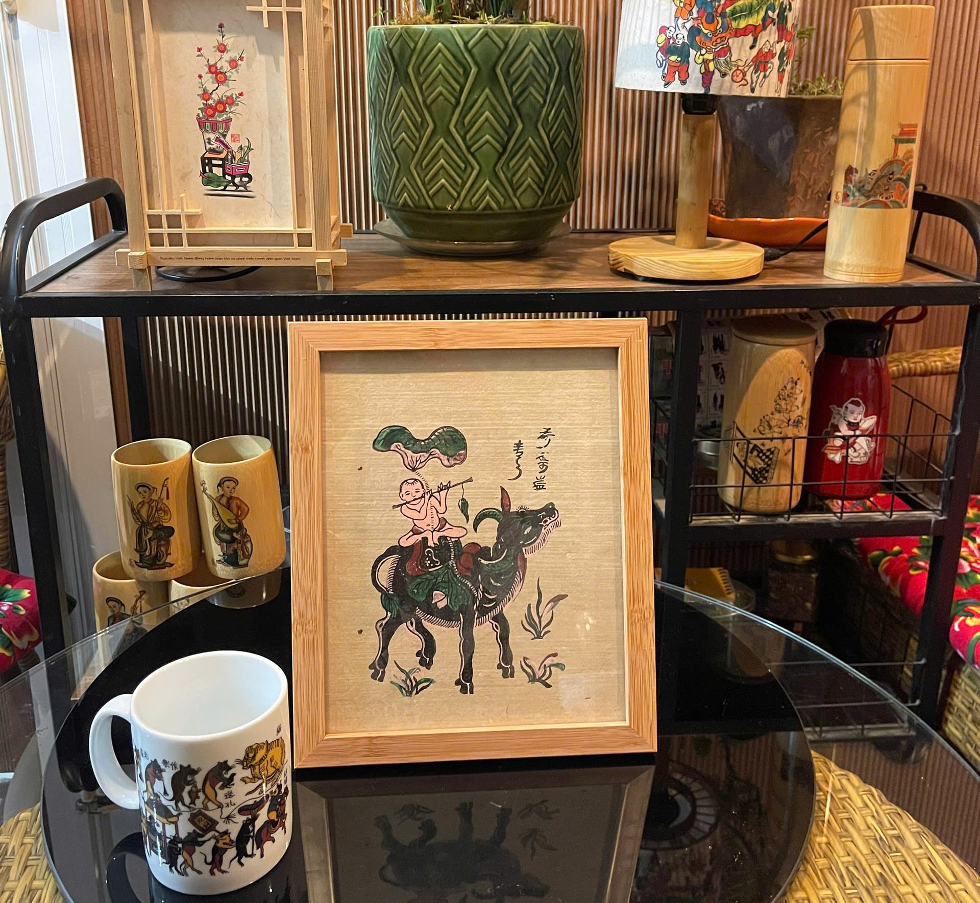 Không chỉ sáng tạo những bức tranh dân gian Đông Hồ, Hàng Trống, Kim Hoàng theo phong cách mới, chúng tôi không ngừng nghiên cứu, ứng dụng hình ảnh tranh dân gian Việt Nam vào các sản phẩm hữu ích trong đời sống như: túi vải, bình nước giữ nhiệt, đèn trang trí nội thất…